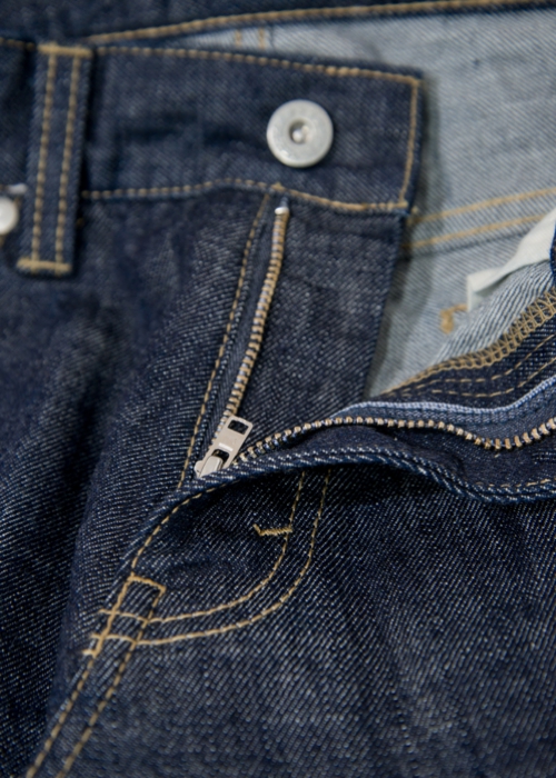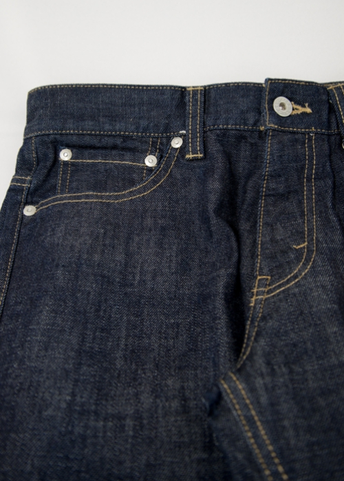 12ozデニムを使用した定番の5ポケットデニムパンツです。テーパードのきいたスリムとスキニーの中間シルエットになります。オンスがやや低めで、綺麗なシルエットの穿きやすいアイテムです。