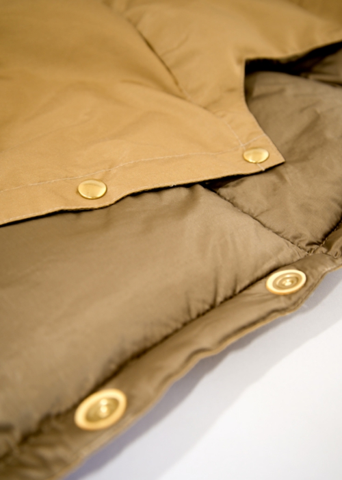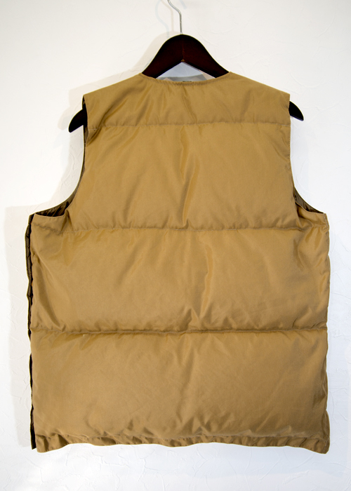 あまり見かけないプルオーバータイプのダウンベストです。表地には60/40クロス、裏地にはリップストップナイロンを採用し、タウンユースからアウトドアまでご使用いただけます。スナップボタンにはブラスを採用し経年変化が楽しめます。アウターとしてもインナーとしてもご使用いただけると思います。