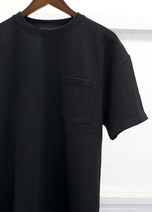 BSQ(バスク)生地のクルーネックTシャツです。肉厚でしっかりとした素材感で、着れば着る程に馴染んでいきます。シンプルなデザインで、胸のポケットがアクセントになっています。ビッグシルエットなので1枚はもちろんレイヤードも楽しめるアイテムです。