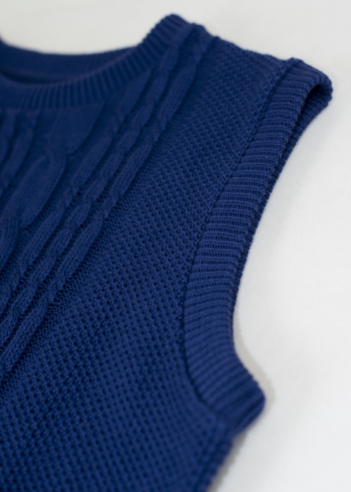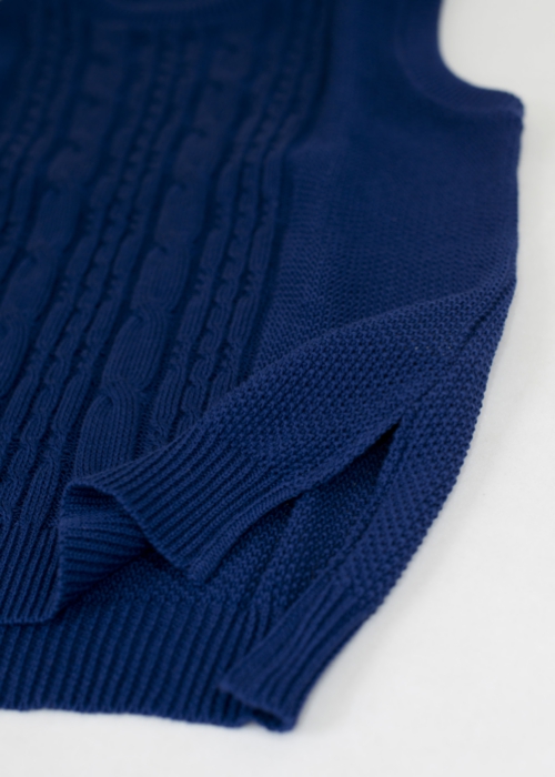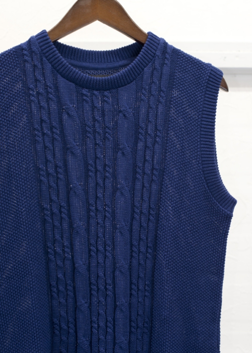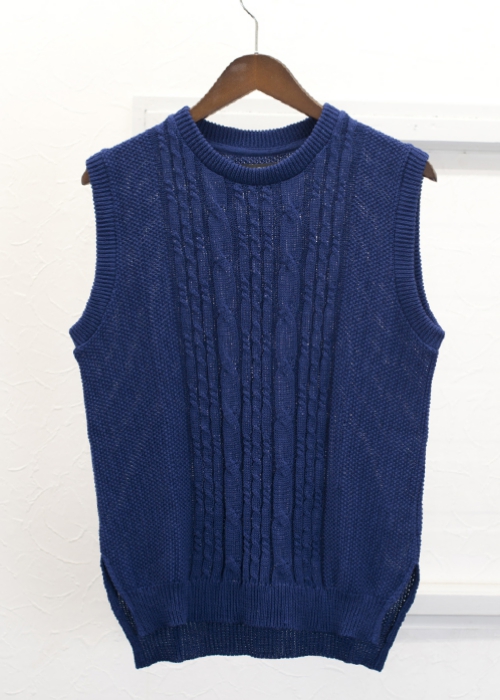 フレンチリネンを使用したケーブル×鹿の子編みのニットベストです。フレンチリネンとは、涼しい気候と豊富な水に恵まれたフランス北部で栽培された高品質の麻の事で、とろみのある柔らかさが特徴です。着れば着るほどに馴染んでいき、愛着の湧く素材感をお楽しみいただけます。裾の再度にカットが入っており、脱ぎ着を妨げません。