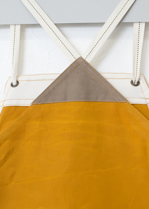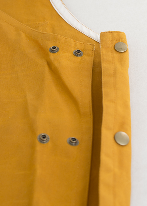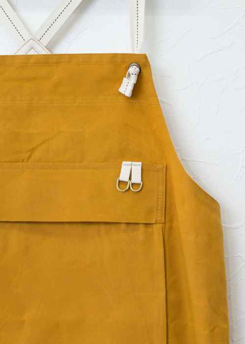 1stの着丈を長くし、パラフィン加工のコットンを使用したモデル。作業時のエプロンとしての機能性を高めました。パラフィン加工は、テントやトラックのホロなどに使われている加工の一つで、防水効果があります。使い始めは硬く感じますが、長く使っていくうちに柔らかくなります。ガツガツ使って自分好みにするのも楽しいと思います。