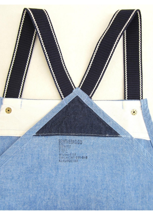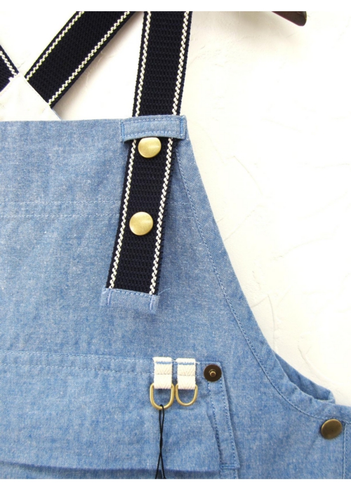 ブルーのダンガリー地で、カットソーやシャツとも相性良く、気軽にコーディネイトが可能です。