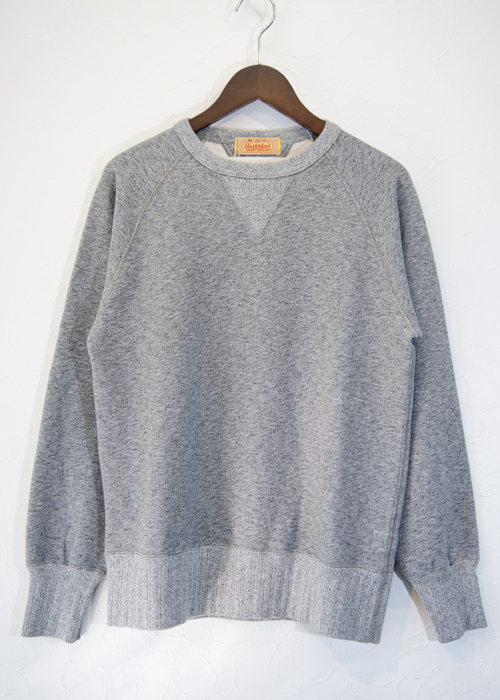 HEALTHKNITとSelfとのコラボレーションアイテムです。糸から編み上げ、独特の杢グレーに仕上がっています。袖口、ポケットのリブ部には40年代に多くみられた「針抜きリブ」を採用しています。リブの一部だけ針を抜いて編みあげる事で独特の表情と締め付けすぎず、緩すぎずの絶妙なフィッティングを体感できます。2本針縫製、そして、1890年代~1970年代まで労働組合に加盟していたメーカーの製品に付けられていたユニオンラベルも、再現し内側に縫い付けられたこだわりのスウェットです。シャツ、カットソーなどインナーを選ばすお楽しみ頂ける、大人なアイテムです。