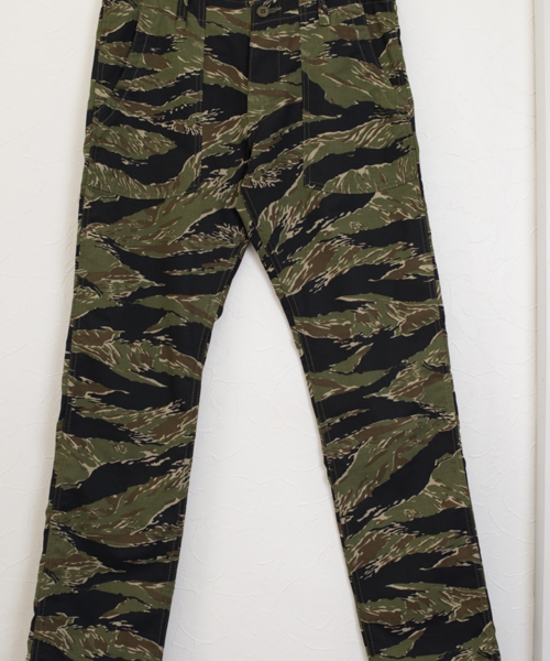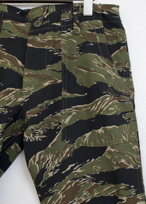 腰回りにはゆとりを持たせつつ、レングスは細身でスッキリとしたシルエットに仕上げ、現代風にリプロダクトした、ナロータイプのベイカーパンツ(ファティーグパンツ)です。破れ防止、裂け防止の機能を持ったリップストップ素材を使用しています。第二次世界大戦中に、アメリカで戦闘服やパラシュートなどの生地の耐久性を高める為に、開発された繊維技術で、太い糸や複数に撚った糸を格子状に織り込んだ丈夫な薄手地です。