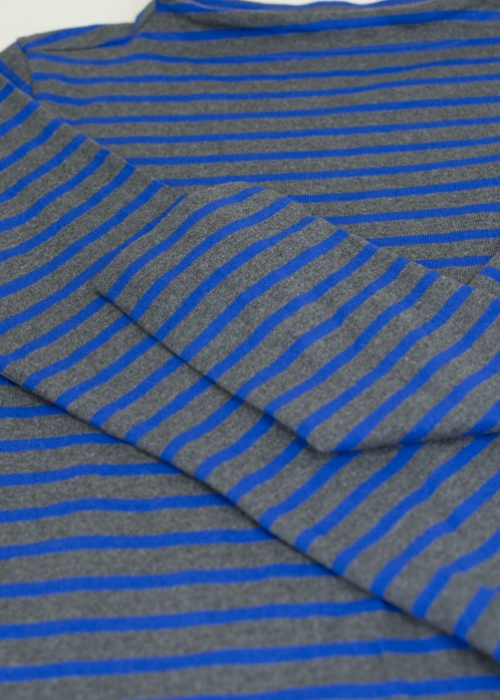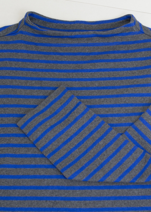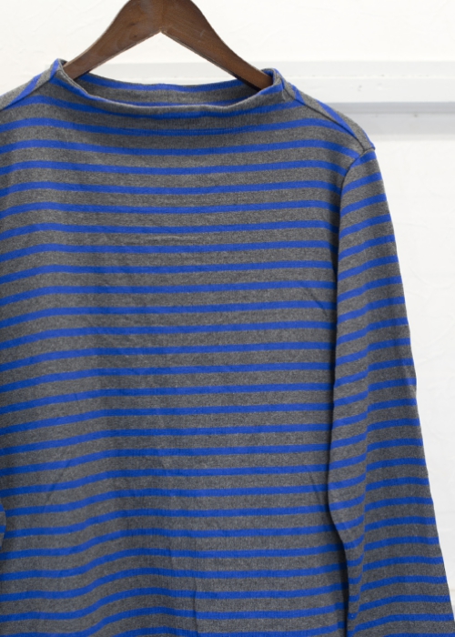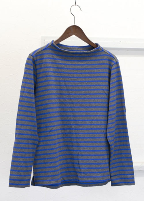 ガンジーニットのディテールをバスクシャツに落とし込んだ様な、程良い開き具合に少し立ち上がる襟元が特徴のカットソーです。体のラインが出にくいゆったりとしたシルエットで、一枚はもちろん、シャツの上からでもバランス良く着こなせます。洗いのかかった柔らかな風合いで、シーズンを通して着て頂けます。しっかりとした厚手のコットン生地を使用しているので、ガンガン洗濯もでき、着る程に体に馴染んでいきます。