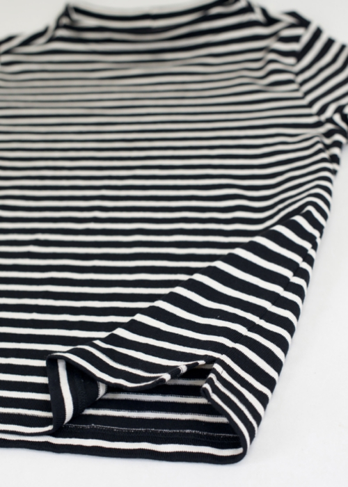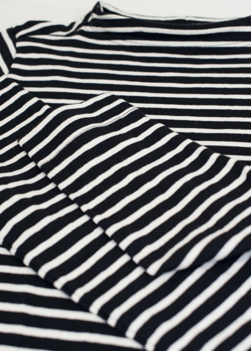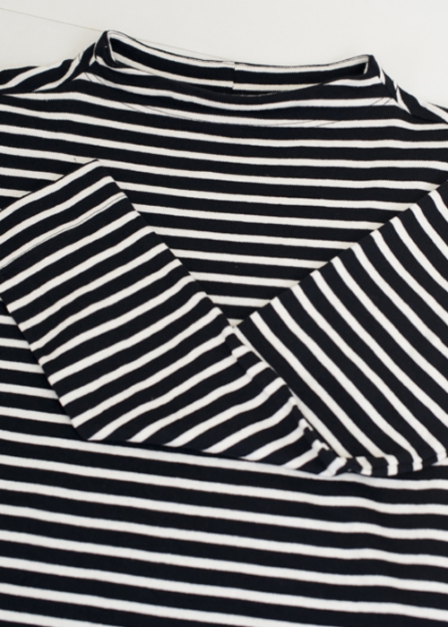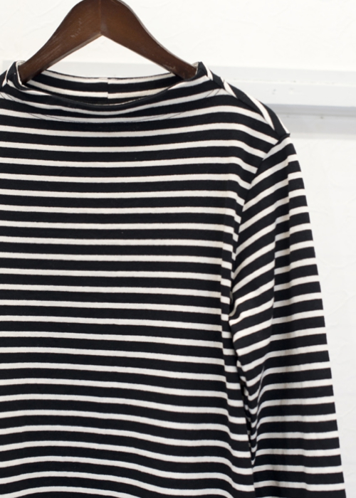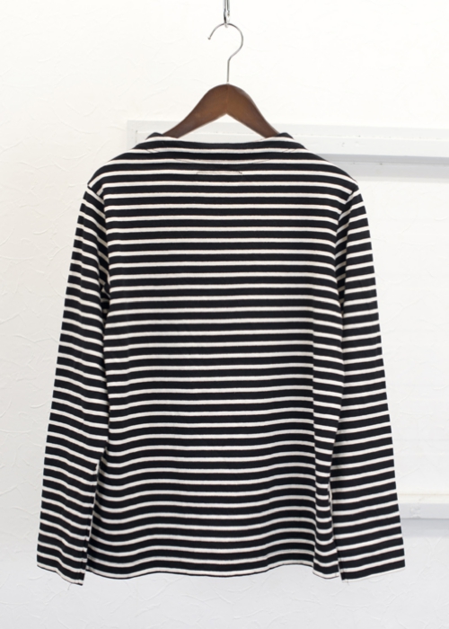 ガンジーネックカットソー 長袖 細ボーダー(BLACK×KINARI_nisica
