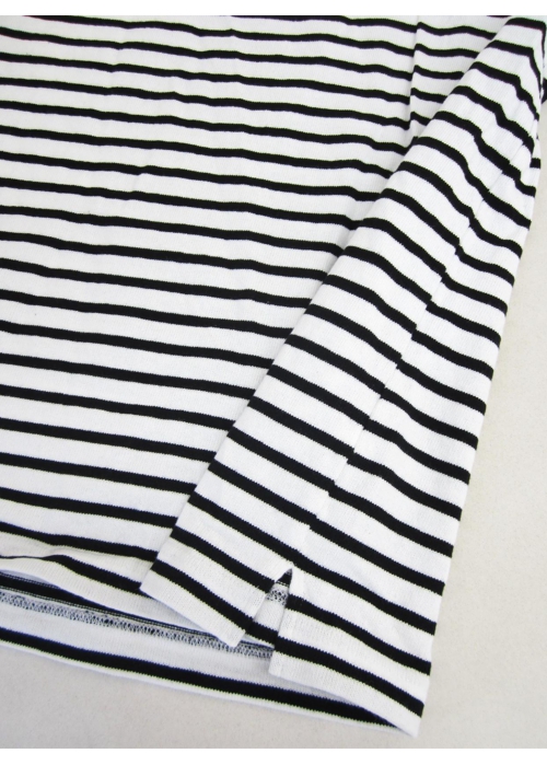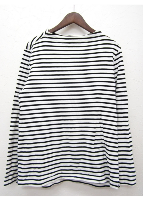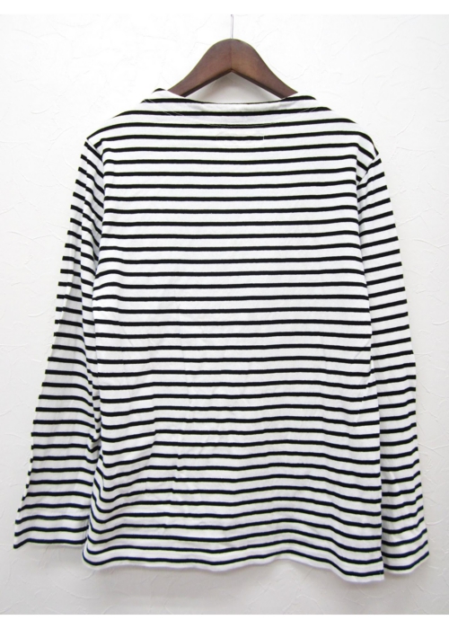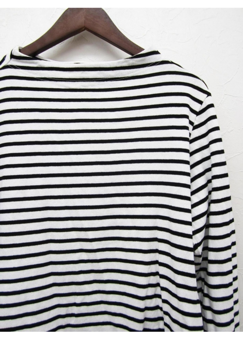 ガンジーネックカットソー 長袖 細ボーダー(WHITE×BLACK_nisica
