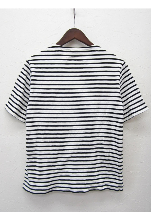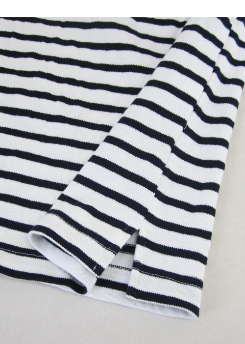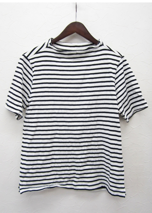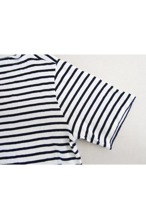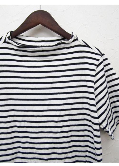 ガンジーネックカットソー 半袖 細ボーダー(WHITE×NAVY_nisica