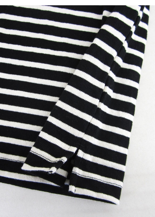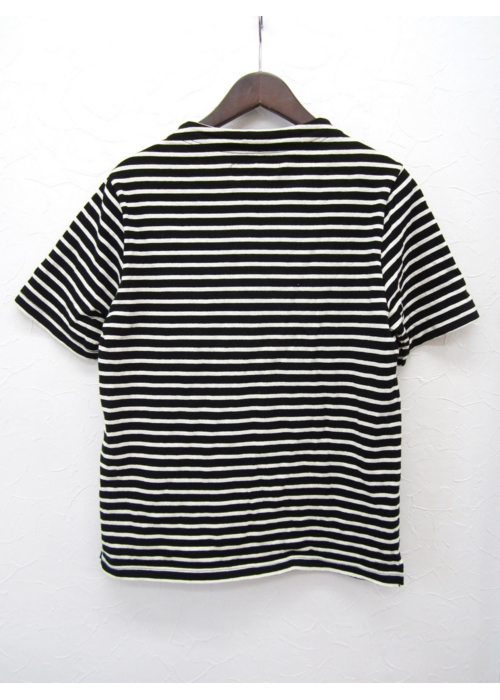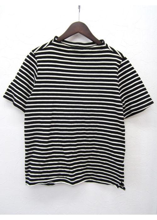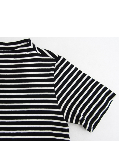 ガンジーネックカットソー 半袖 細ボーダー(BLACK×KINARI_nisica