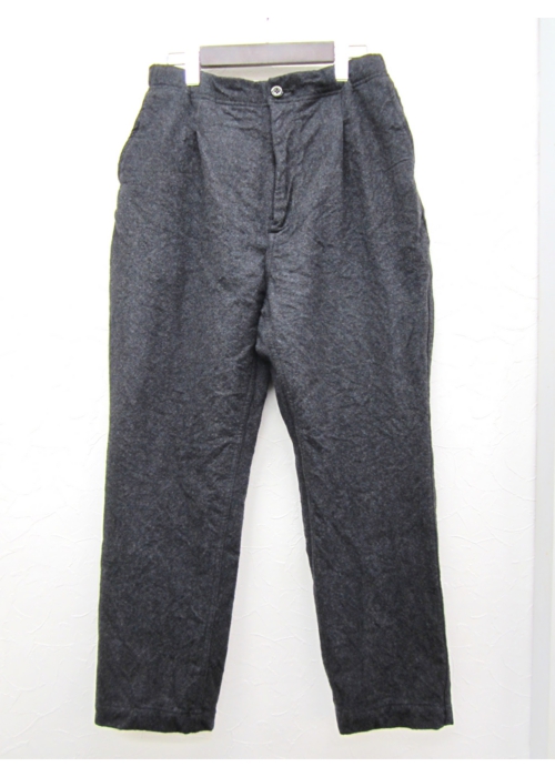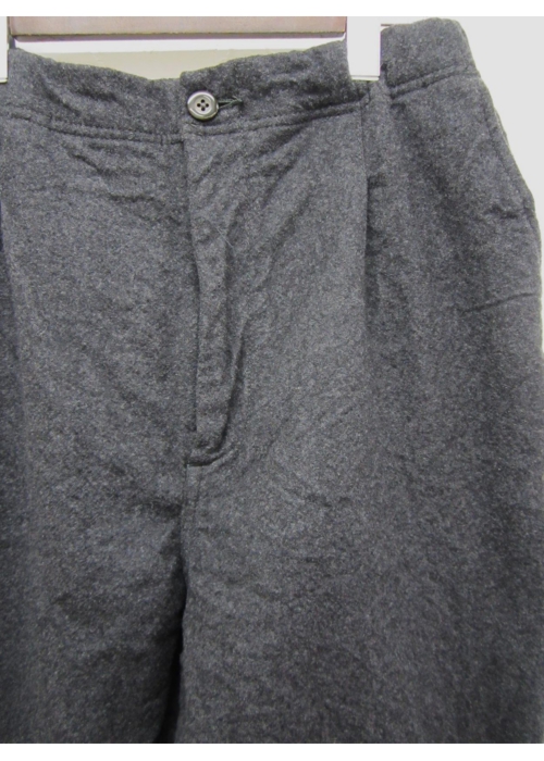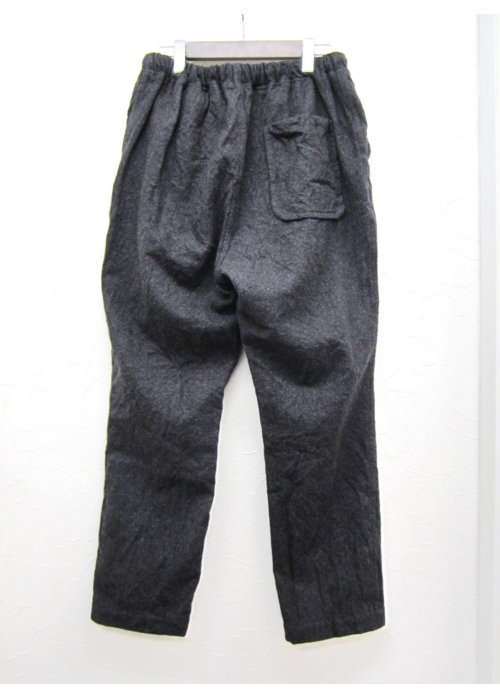 ウエストはゴムとドローコードが入っているので、ストレス無く着用出来ます。ウールの質感やすっきりとしたシルエットが、だらしなくならず普段のスタイルにアクセントを加えてくれます。