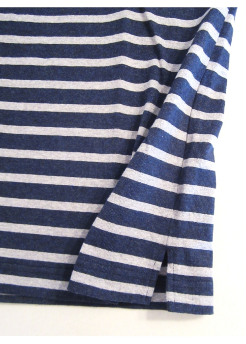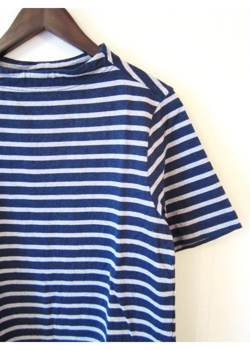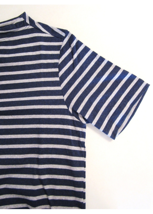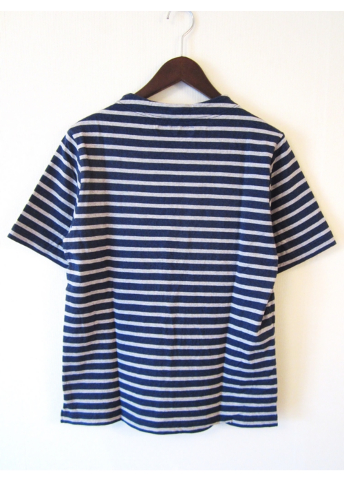 ガンジーネックカットソー 半袖 細ボーダーNAVY×GRAY_nisica