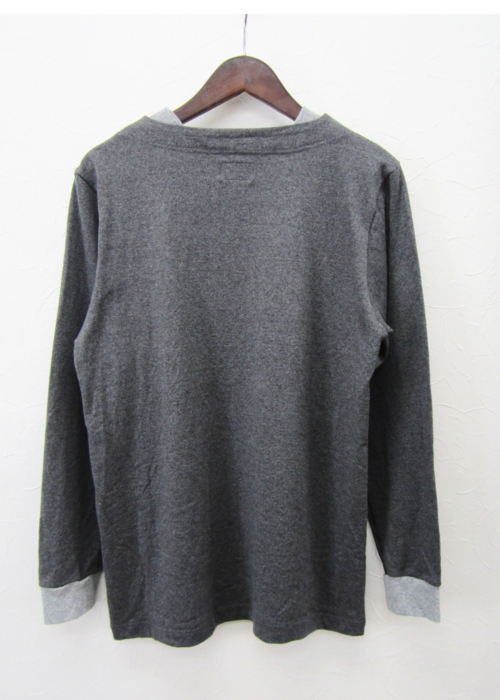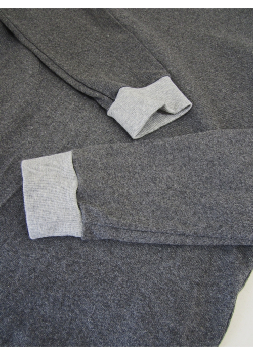 ダーク杢グレーを使用したシンプルでベーシックなバスクシャツ風のデザインです。 襟元と袖先のリブ素材のライト杢グレーの切り返しがアクセントになっています。