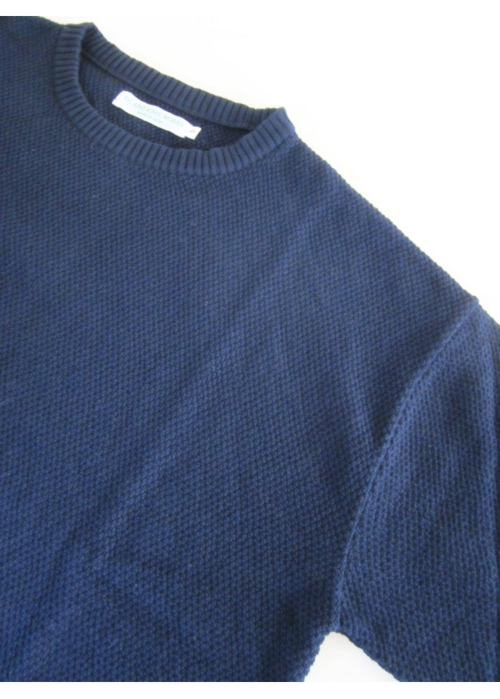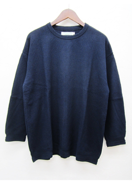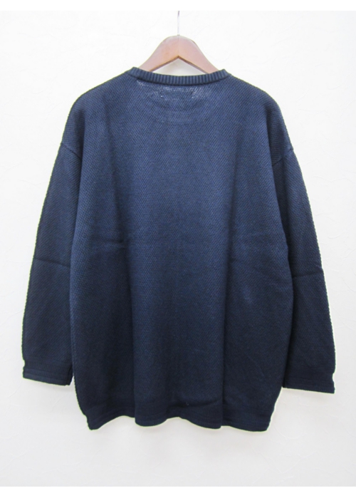 10G Big Links 9/s ワイドシルエット9分袖 リンクス柄コットンニット(NAVY)_ISLAND KNIT WORKS