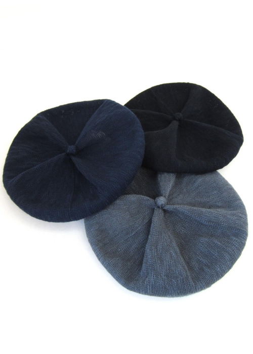 De La-L タック入りベレー帽 コットンリネン(BLACK/NAVY/CHARCOAL)_ISLAND KNIT WORKS
