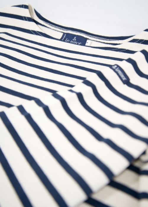 1936年にフランスの西海岸、ロレアン地区で設立されたLe minorは、ブルターニュ地方で80年以上フランス生産を守り続けている希少なブランド。天然素材をベースに都会的に洗練されたスタイリングの提案をしています。 一時期はフランス海軍に制服として使われていたこともあります。