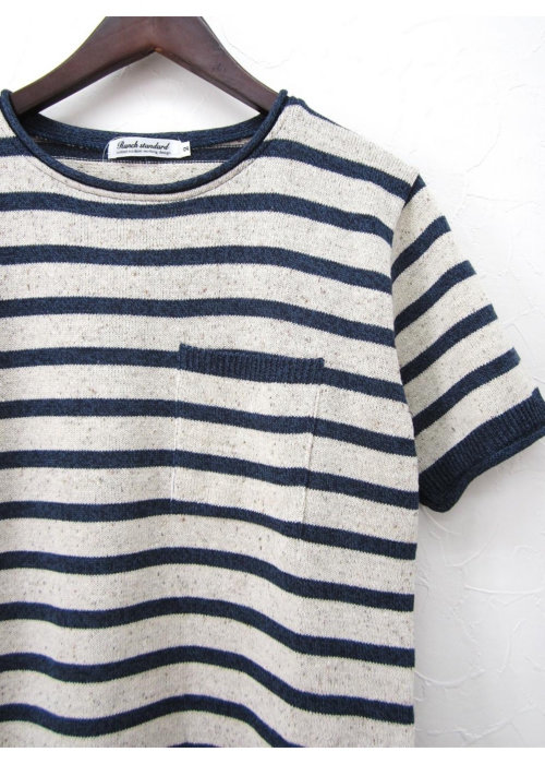 ジャズネップ素材を使用したナチュラルな雰囲気の爽やかなボーダーニットです。